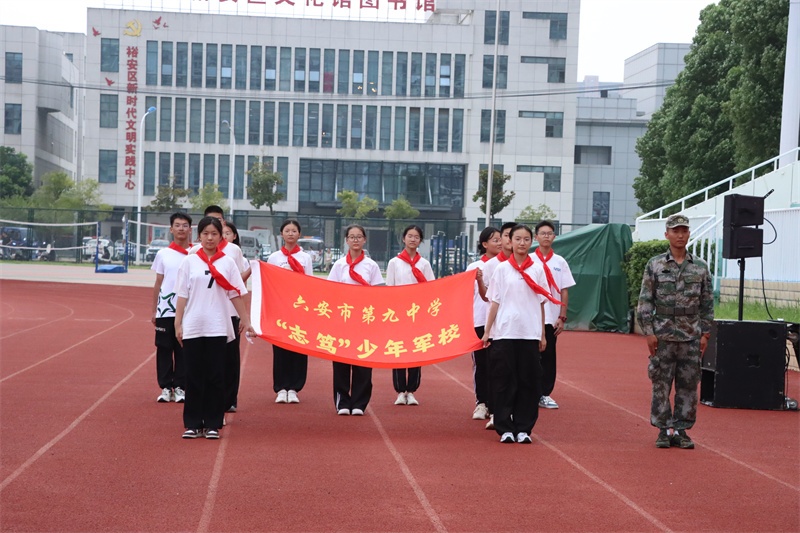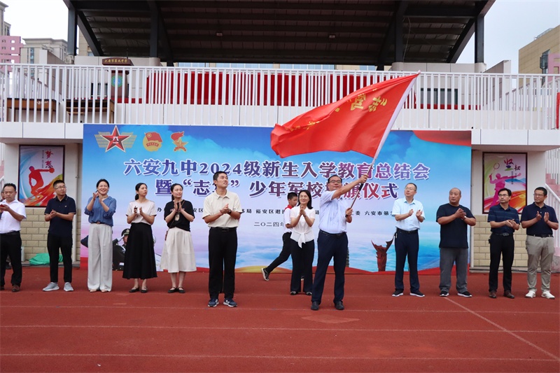 旗帜引领方向,奋斗正当其时。少年军校是新时代加强青少年国防教育的现实需要,是锤炼和培养青少年良好意志品质的重要途径,更是全面实施素质教育的有效举措。少年军校授旗仪式上,区教体局教育团工委书记陈悦宣读关于创建“‘志笃’少年军校”的文件通知,团区委副书记杨锐为“志笃”少年军校授旗,六安九中党委书记李艳为“志笃”少年军校校外辅导员杨林颁发聘书。六安九中“志笃”少年军校正式成立。今后,六安九中将更好地探索和发挥少年军校功能作用、运行机制,引导志笃少年在军校活动中磨练意志、强健体魄,培养集体主义、爱国主义、社会主义情感,激发广大师生的爱国主义情感,让红色精神、国防观念在大美九中薪火相传。