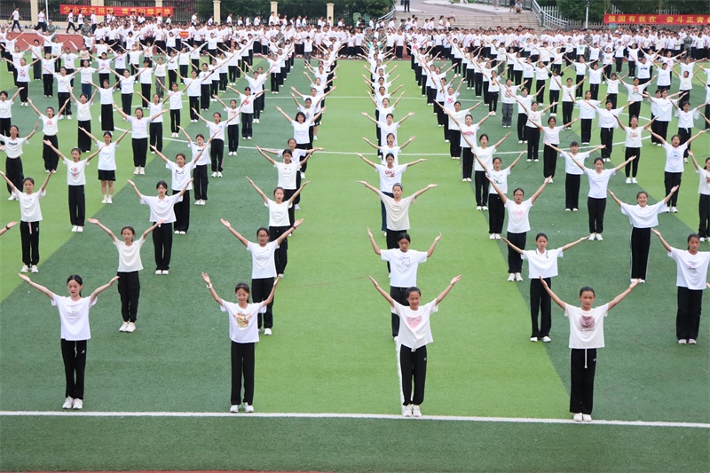 2400余名“志笃少年”用身体拼出的“中国版图”将整场汇演的气氛推向高潮。当音乐响起,千人方阵被瞬间“点燃”,他们步伐坚定有力,他们动作整齐划一,变换的方阵是他们辛苦付出的回报,“中华人民共和国成立75周年”“1949—2024”“中国地图”等图案造型给人带来视觉的享受和心灵的震撼,“志笃少年”们用良好的精神风貌表达了新时代学子对新中国75华诞的衷心祝福。