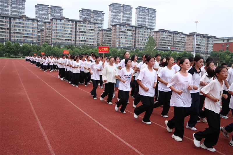 激情跑操拉开了汇报展演的序幕。伴着跃动的旋律,各班级快速集结,围满操场一圈。在主教官高亢有力的指挥声中,36支班级队伍整整齐齐跑动,浩浩荡荡卷过。身姿轻盈,动如脱兔,步履生风,挥臂迅捷。激情澎湃的跑操,跑出了“志笃少年”的蓬勃朝气,跑出了九中学子的昂扬斗志。