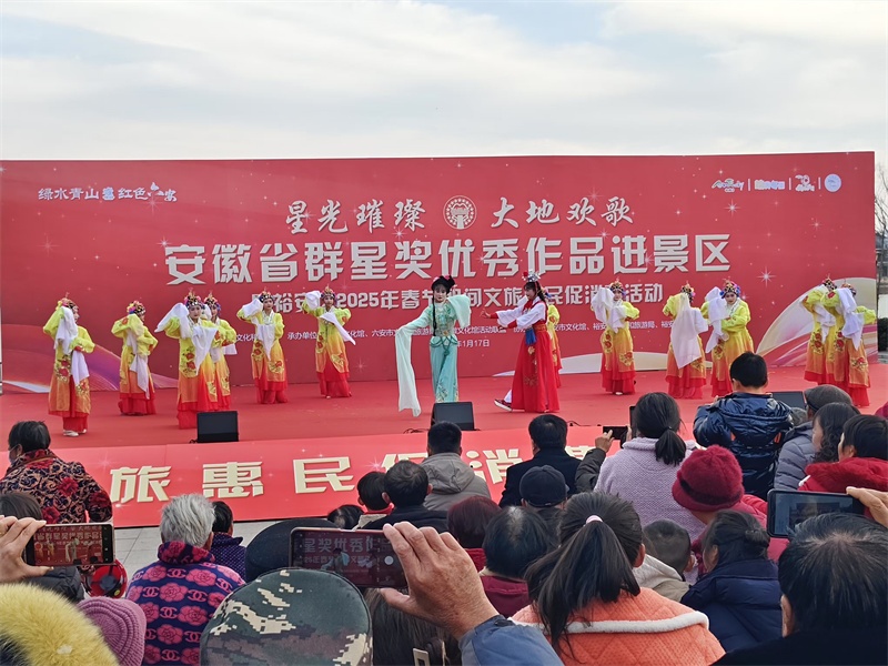 为全面贯彻落实党的二十届三中全会精神,推动优质文化资源直达基层,传播推广优秀舞台艺术作品,满足人民群众日益增长的精神文化生活需要,由安徽省文化和旅游厅主办,安徽省文化馆、六安市文化和旅游局、安徽文化馆活动联盟承办的“‘群星奖’优秀节目进景区”来到了革命老区独山镇,其中我校庐剧社团的节目《庐韵》入选。