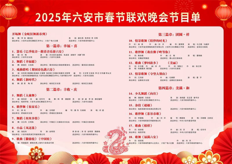 玉龙辞旧岁,金蛇迎新春。1月21日晚,由中共六安市委宣传部主办,六安市文化和旅游局、六安市新闻传媒中心承办的2025年六安市春节联欢晚会在市文化馆红剧场激情上演。我校庐剧社团精心编排的原创作品——庐剧表演唱《庐韵》在市春晚的舞台上惊艳亮相,大放异彩,充分展现了我校学生社团的风采活力和艺术教育的卓越成果。