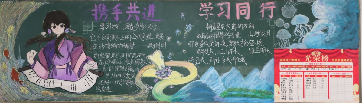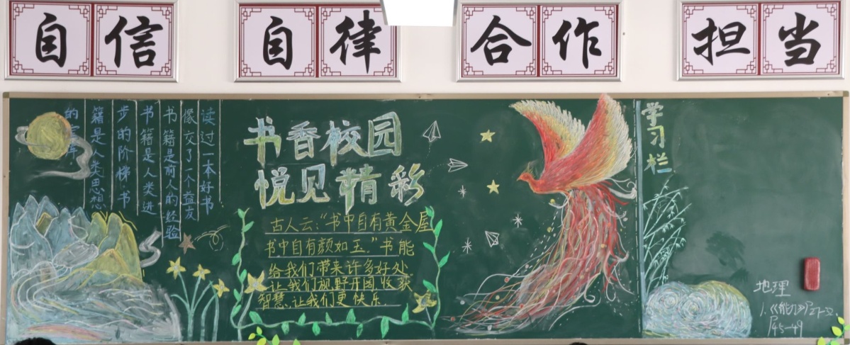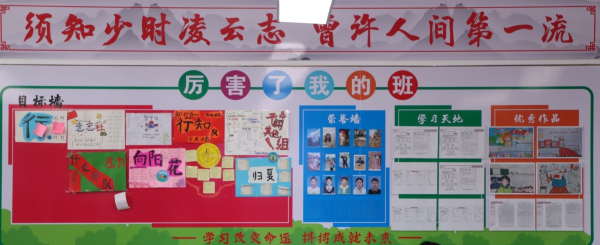 踏入各班,只见教室布置独具匠心,既显整洁之美,又富创意之趣,每一处细节都跃动着班级的个性光芒与无限活力。图书角内,书卷轻叠,静候知音,散发着智慧的芬芳;墙壁之上,名人箴言与学生感悟相映成趣,如灯塔般照亮学子前行之路;黑板之上,一幅幅创意十足的黑板报,宛如窗口,展现着班级文化的多元与创新魅力。