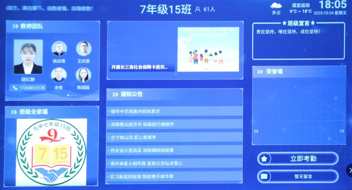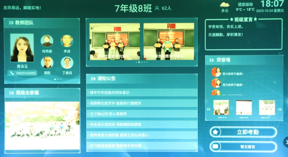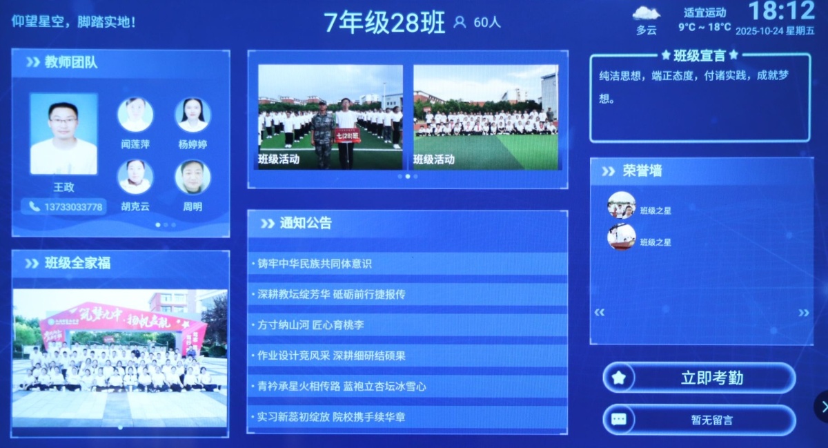 活动现场,各班级精心设计的电子班牌内容丰富多样,既有班级动态的实时更新,也有学生荣誉的精彩展示,还有班规、班徽、班训等信息的清晰呈现,充分体现了科技与教育的有机结合。评委们从内容创新性、界面美观度、功能实用性等多个维度进行了综合评审,确保评选结果公正、客观。