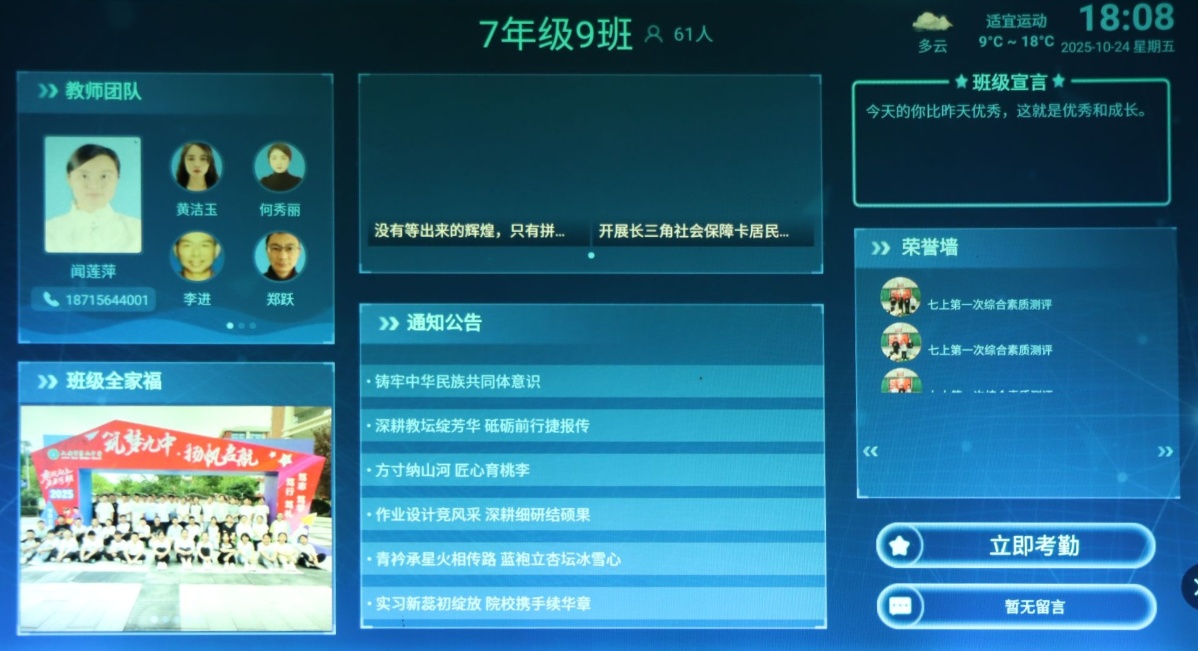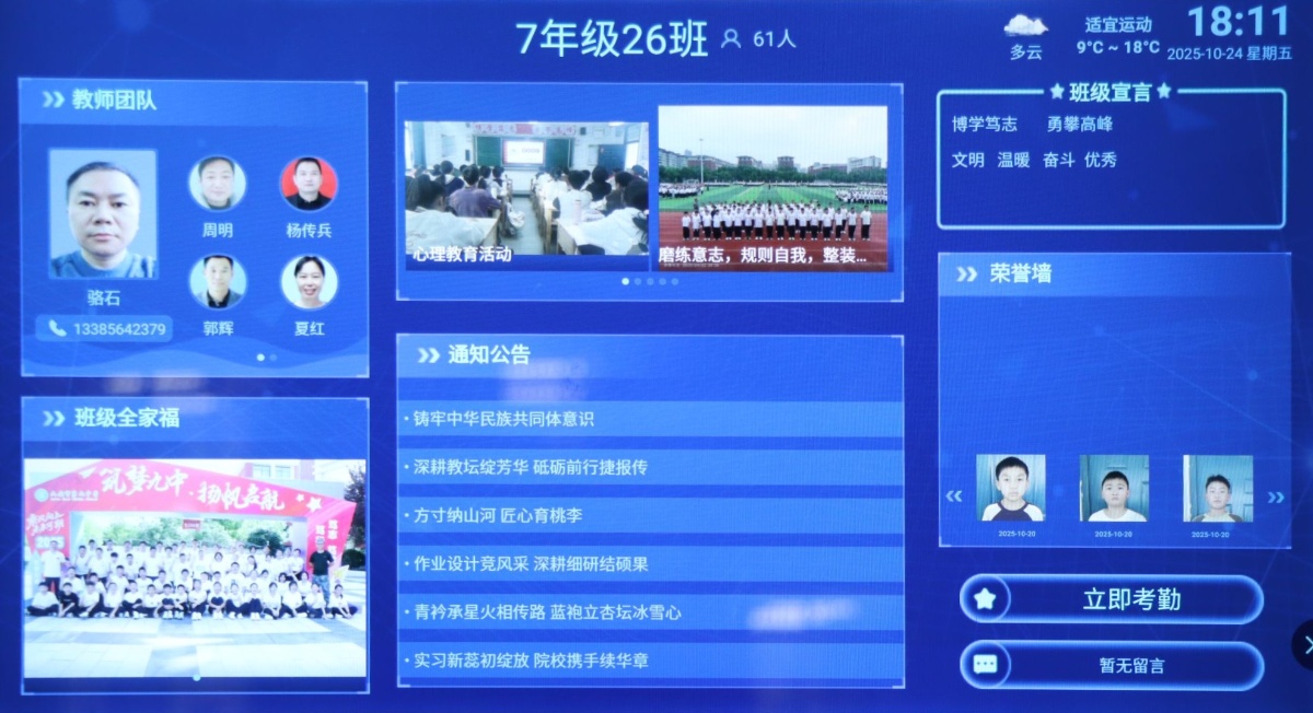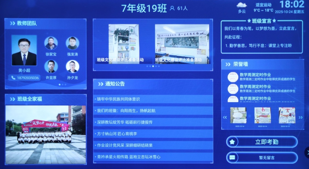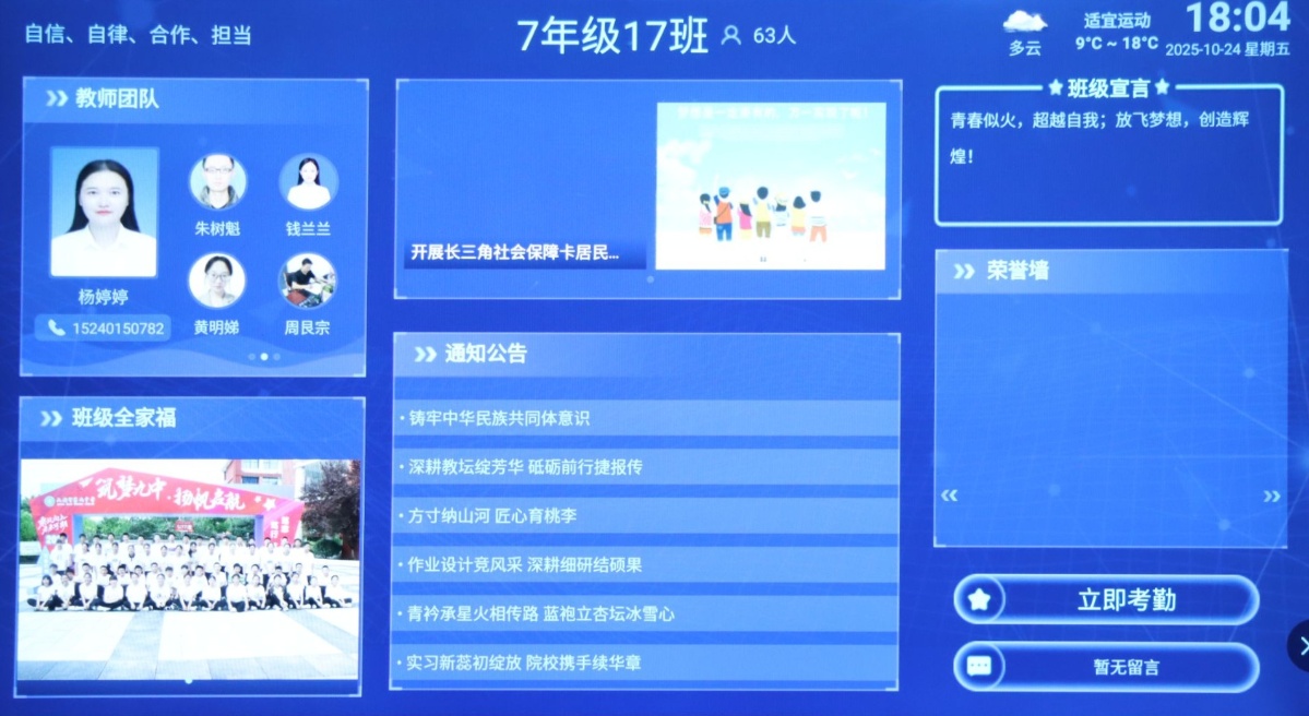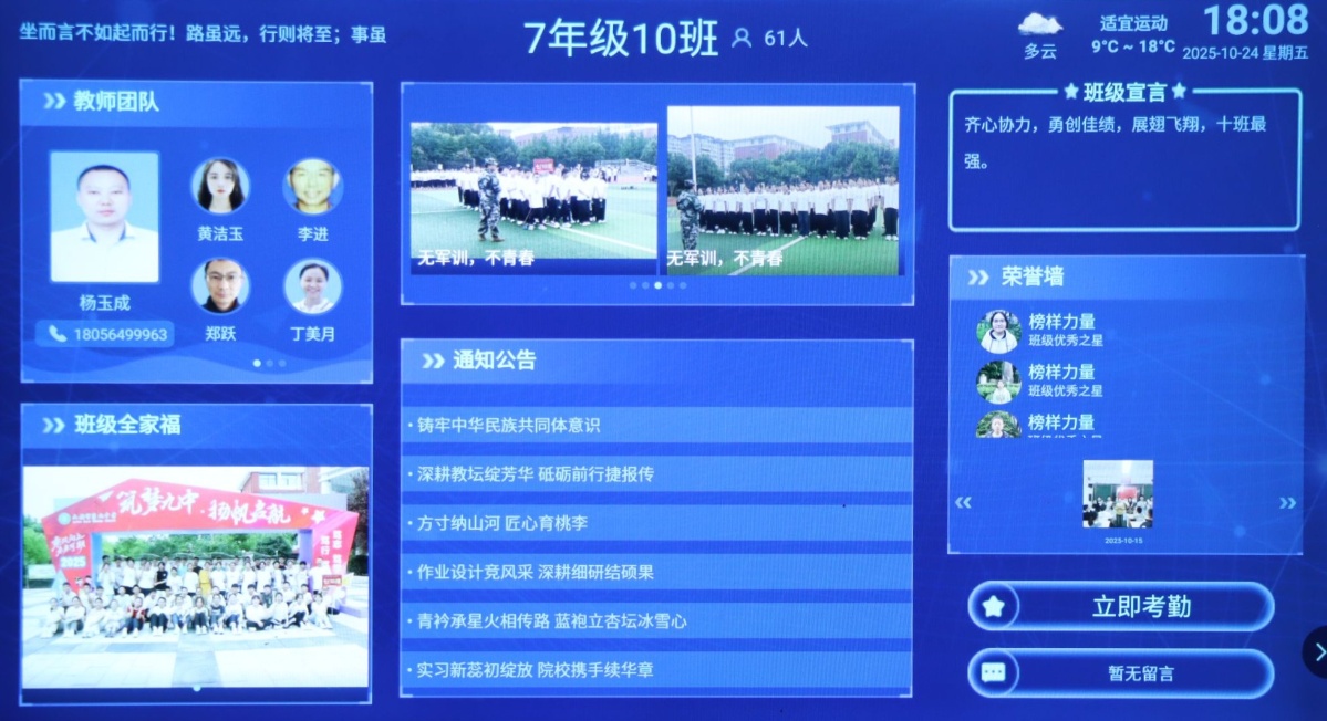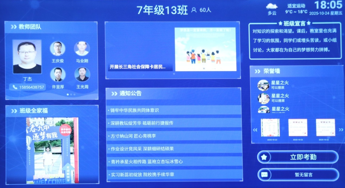 为进一步加强班级文化建设,搭建更多展示班级特色与学生风采的平台,推动智慧校园与班级文化建设的深度融合,10月24日,六安九中举办了主题为“科技引领,智慧校园”的电子班牌应用评比活动。