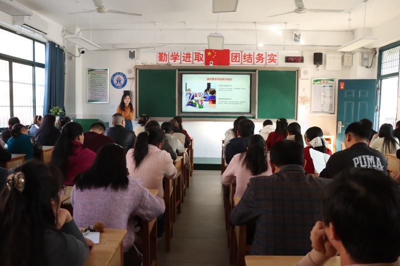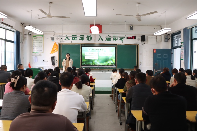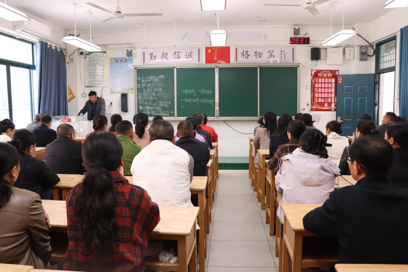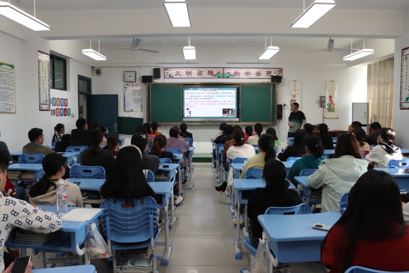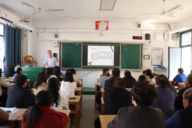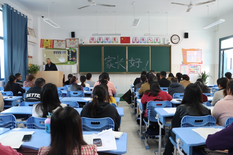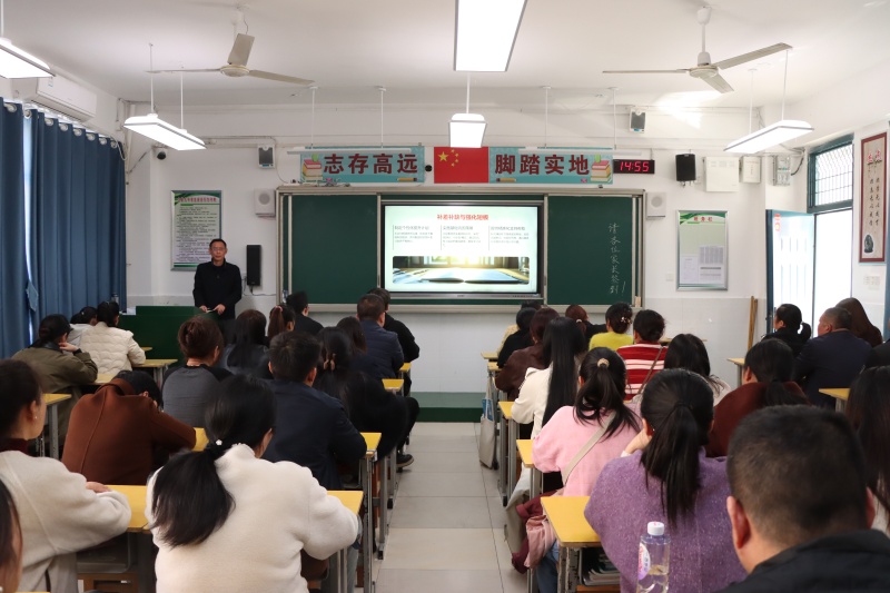 年级部主任杨传广主持会议并就相关工作提出具体要求和建议。他从调整心态、营造沟通氛围、共同面对与诊断等方面,指出了家庭教育的方法与策略。