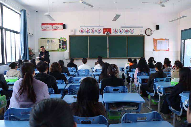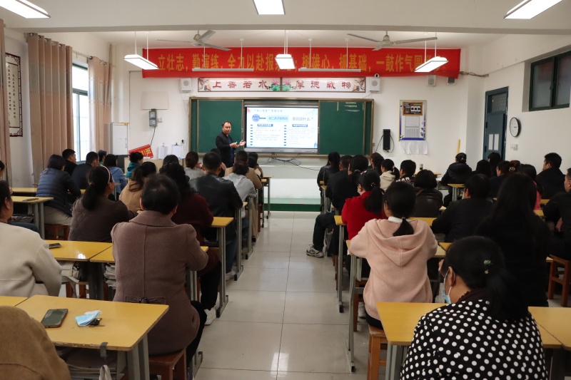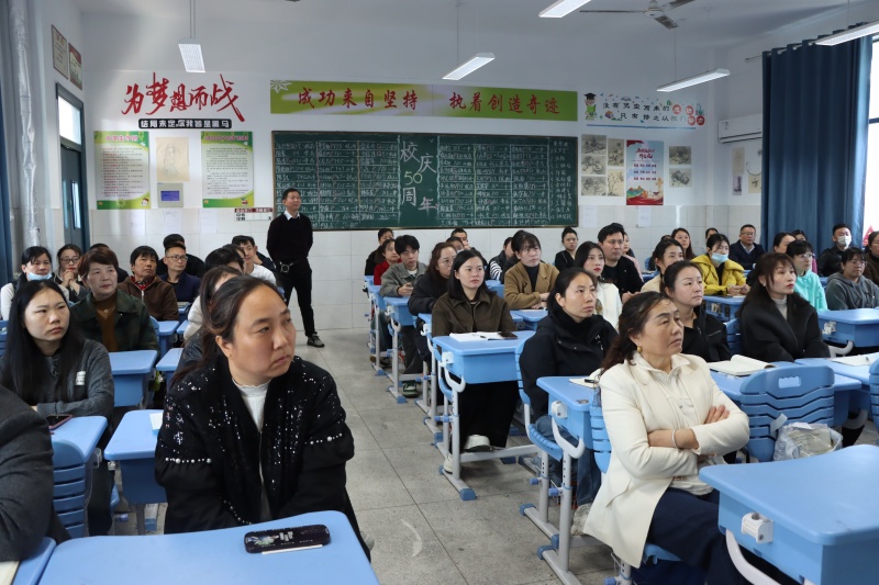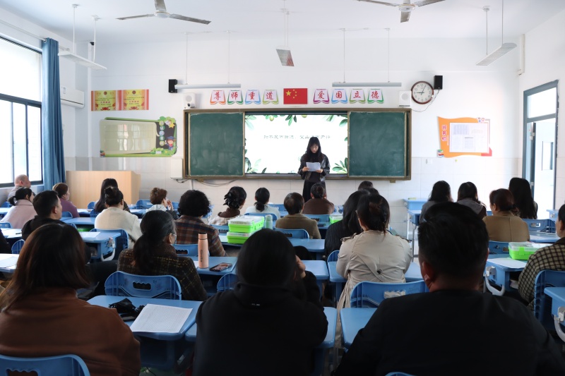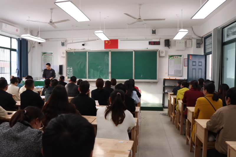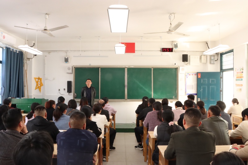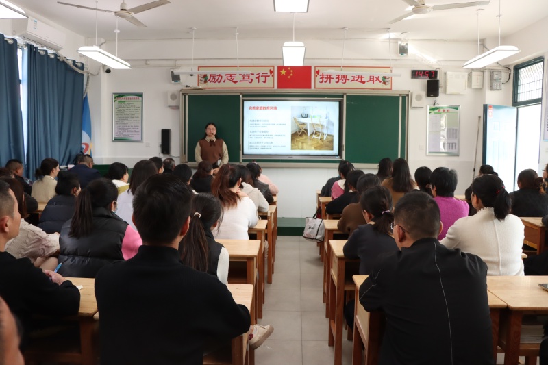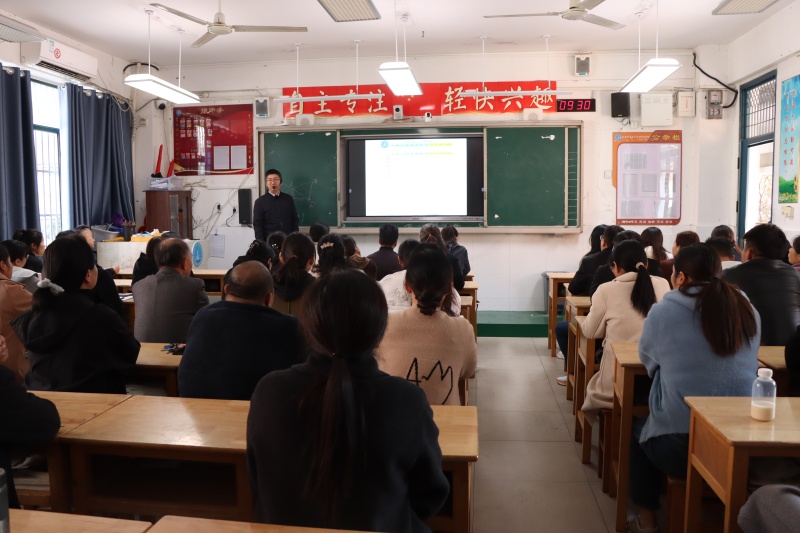 年级部主任杨传广主持会议并就相关工作提出具体要求和建议。他从调整心态、营造沟通氛围、共同面对与诊断等方面,指出了家庭教育的方法与策略。