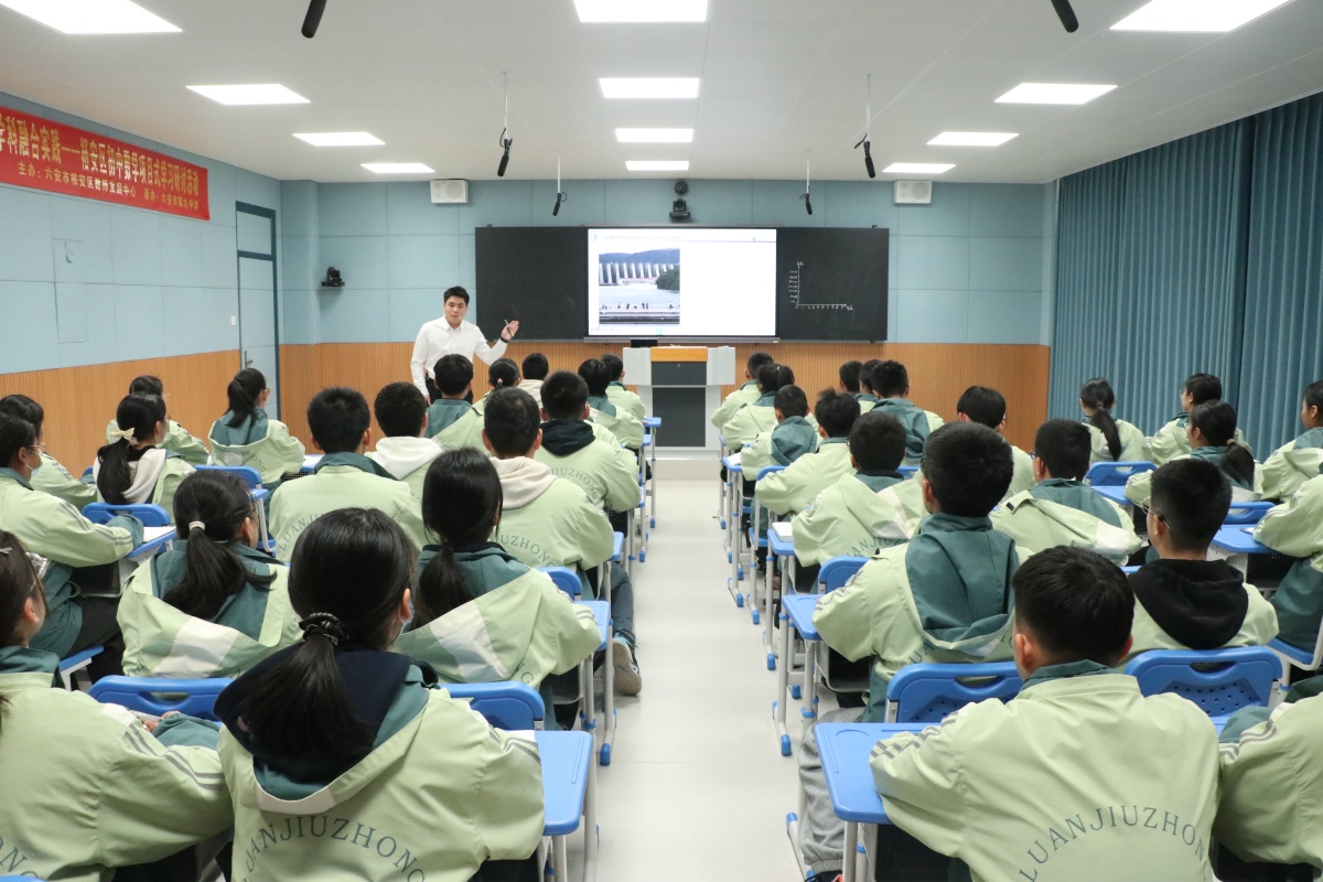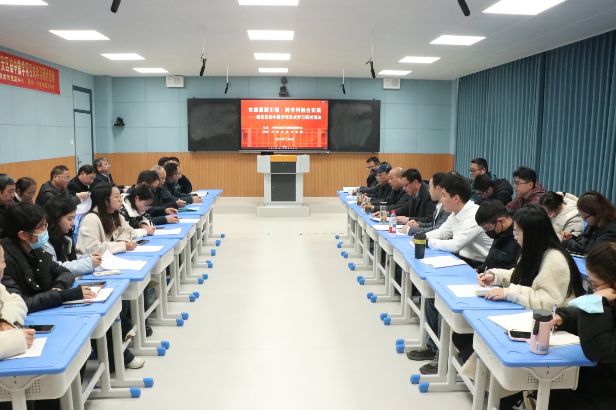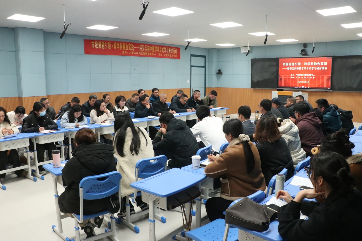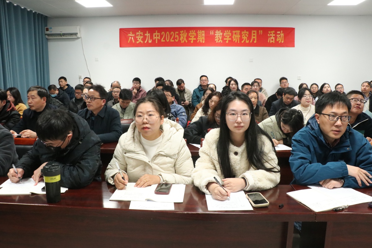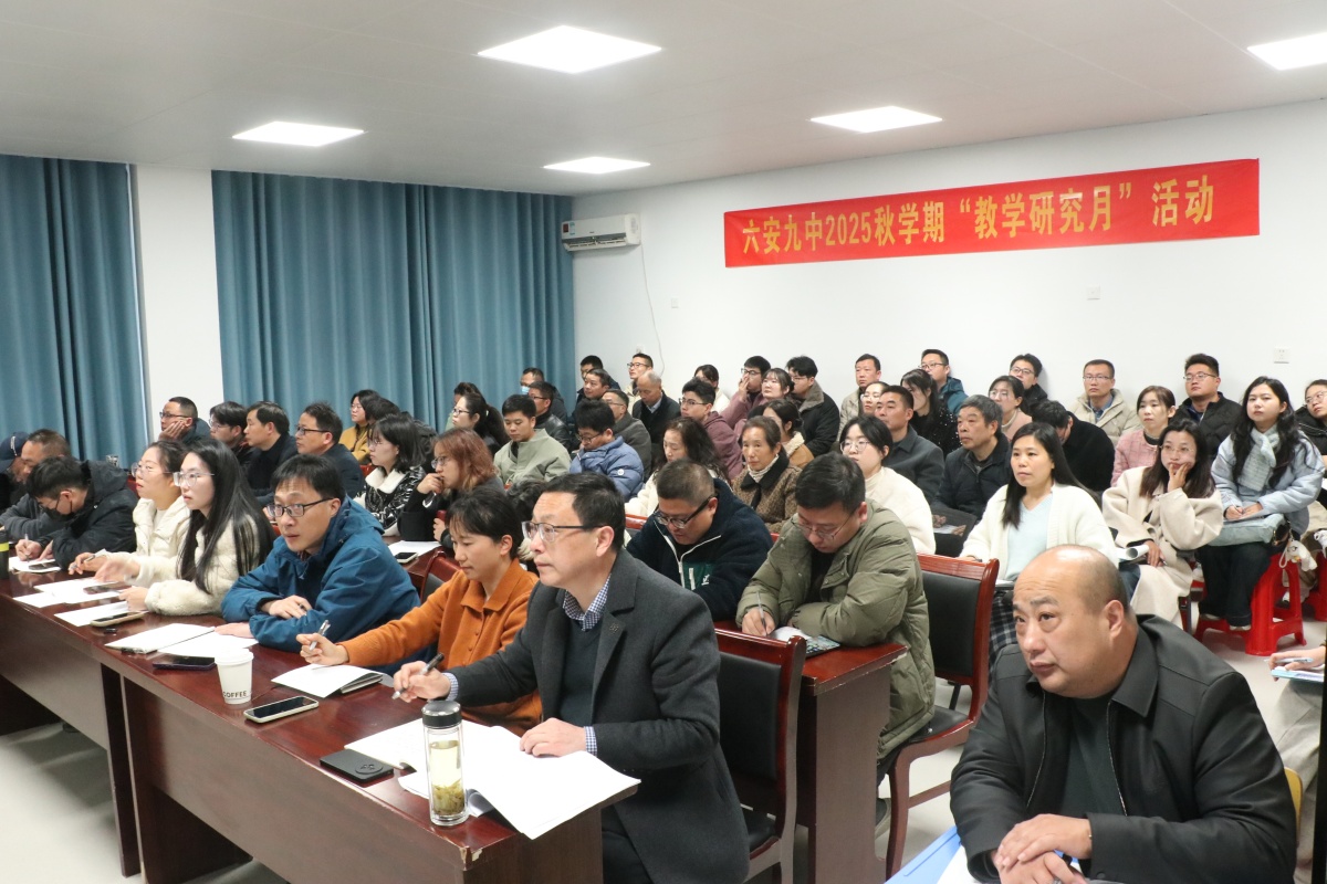 为深入推进市级课题《初中数学跨学科项目式学习活动设计与实践研究》的阶段性成果落地,探索数学核心素养的课堂培育路径,12月9日,在六安九中“教学研究月”第四期活动期间,裕安区初中数学项目式学习教学研讨活动成功举办。本次活动由裕安区教师发展中心主办,六安九中承办,全区各初中数学教师代表参与活动,活动以“示范课展示+专题点评+集体研讨”的形式,聚焦“跨学科素材与数学课堂的精准融合”展开深度交流。