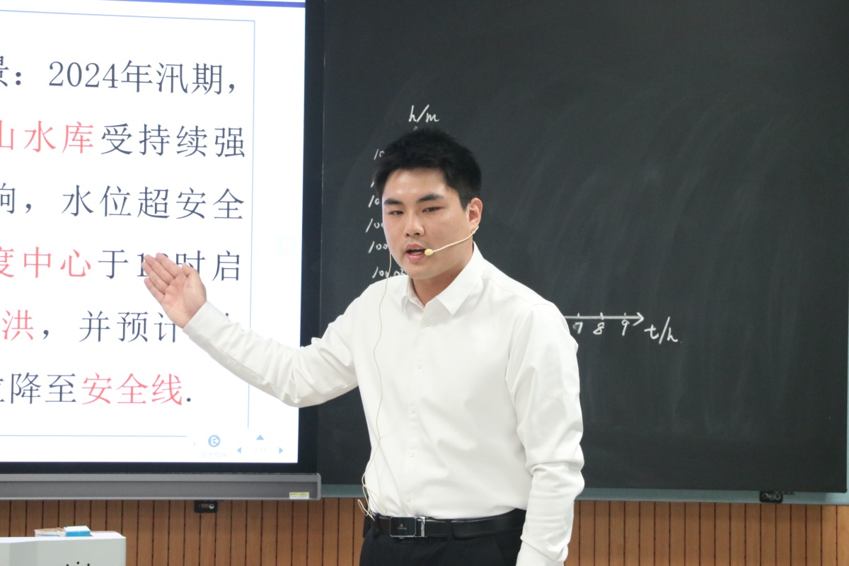 六安市德运希望学校童斌老师呈现的《一次函数的应用》,则以“智御洪峰”为真实驱动任务,结合六安本地水利情境,串联数学建模、物理流体力学、水利工程常识等跨学科内容,让一次函数从“课本公式”转化为“抗洪决策工具”,学生在“水位建模—泄洪分析—风险预测”的项目式探究中,真切体会到“数学是解决现实问题的科学语言”。