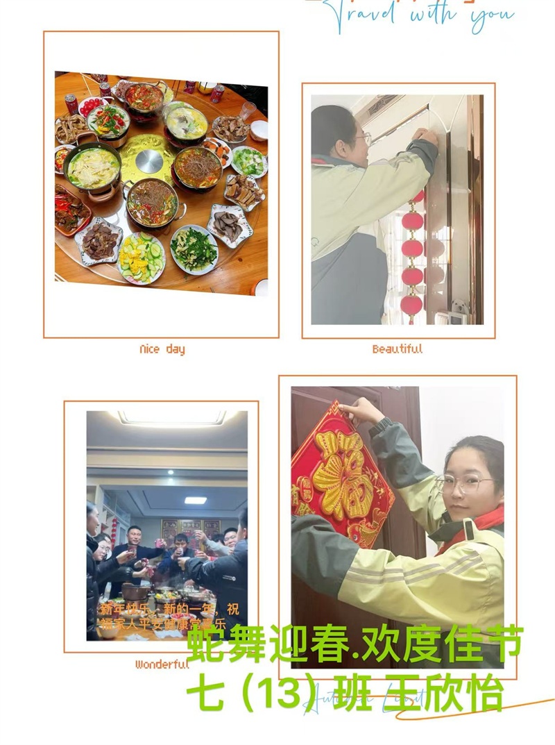 寒假里,恰逢春节和元宵两大传统节日,传统节日承载着丰富的文化内涵和民俗风情。如包饺子、贴春联、舞龙舞狮,还是赏花灯、猜灯谜、放烟火,每一项活动都充满了独特的文化魅力。学子们走进这些民俗活动,亲身体验,感受传统文化的魅力,并用相机记录下这些美好瞬间。