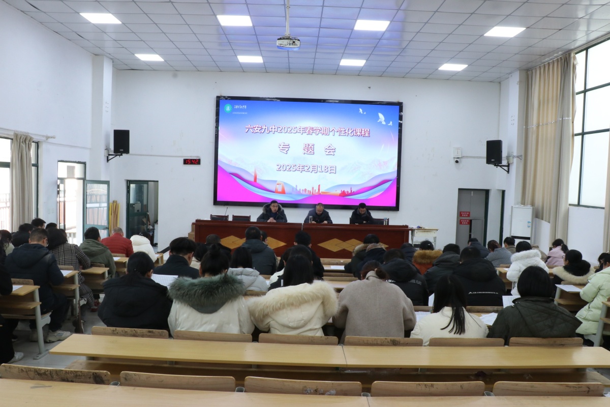 个性化课程是学校教育教学改革的重要举措,是满足学生多样化需求、促进学生个性化发展的重要途径。为了更好地推进个性化课程建设,2月18日下午,六安九中召开2025年春学期个性化课程专题会。