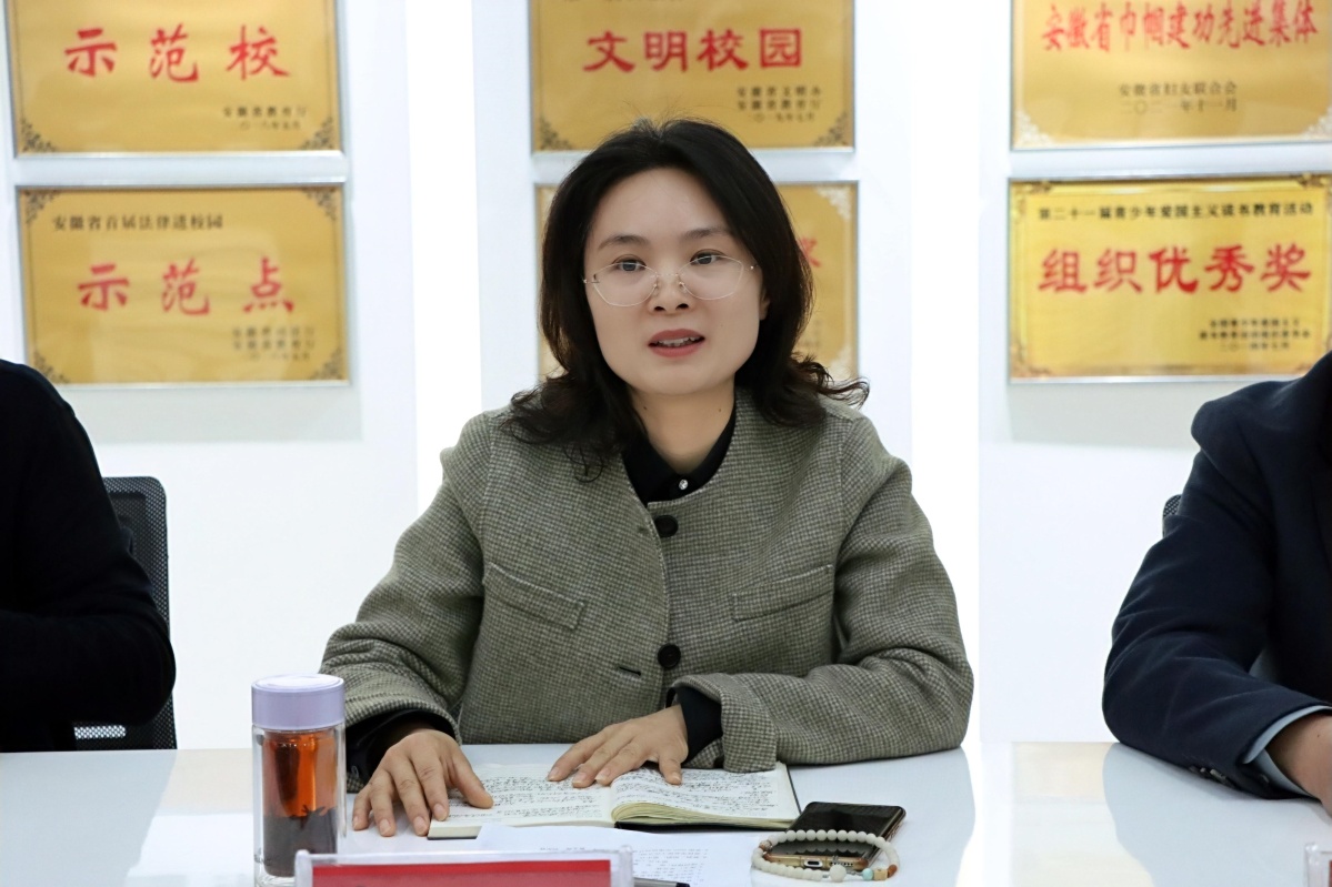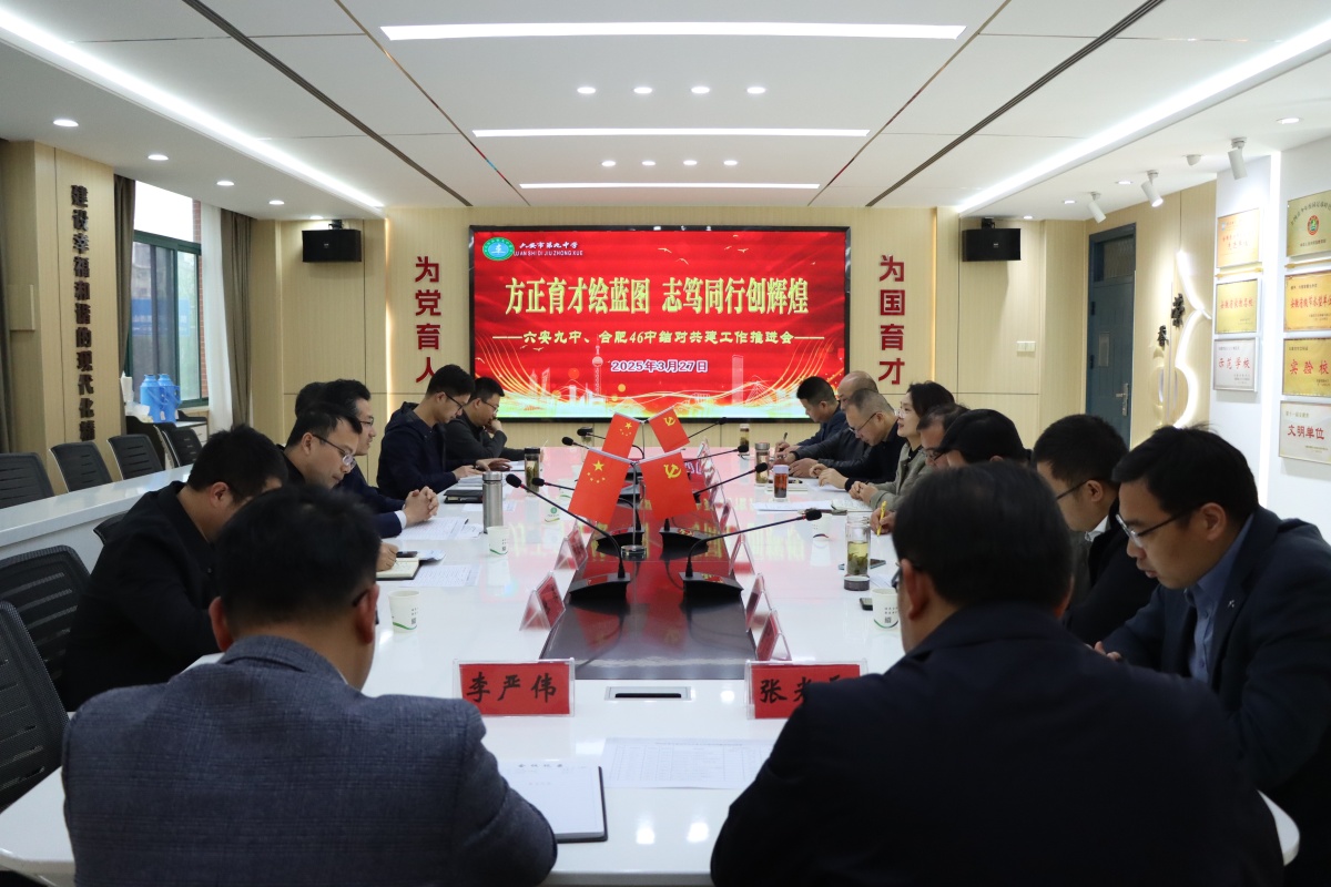 吴大兵从组织建设、重点工作、教学成绩等方面介绍合肥46中教育集团的基本情况。近年来,合肥46中教育集团以校园安全为基础,狠抓教育教学管理,实现全面提升,得到社会各界的高度赞誉。吴大兵表示,两校是结对共建的共同体,自结对共建以来,六安九中发展迅速,在硬件设施、文化内涵、办学品质等方面不断提升;并希望两校领导和老师不断加强交流学习,在教育教学研究、师资队伍建设等方面开展更广泛、更深入的合作,共同推动两校教育事业的高质量发展。