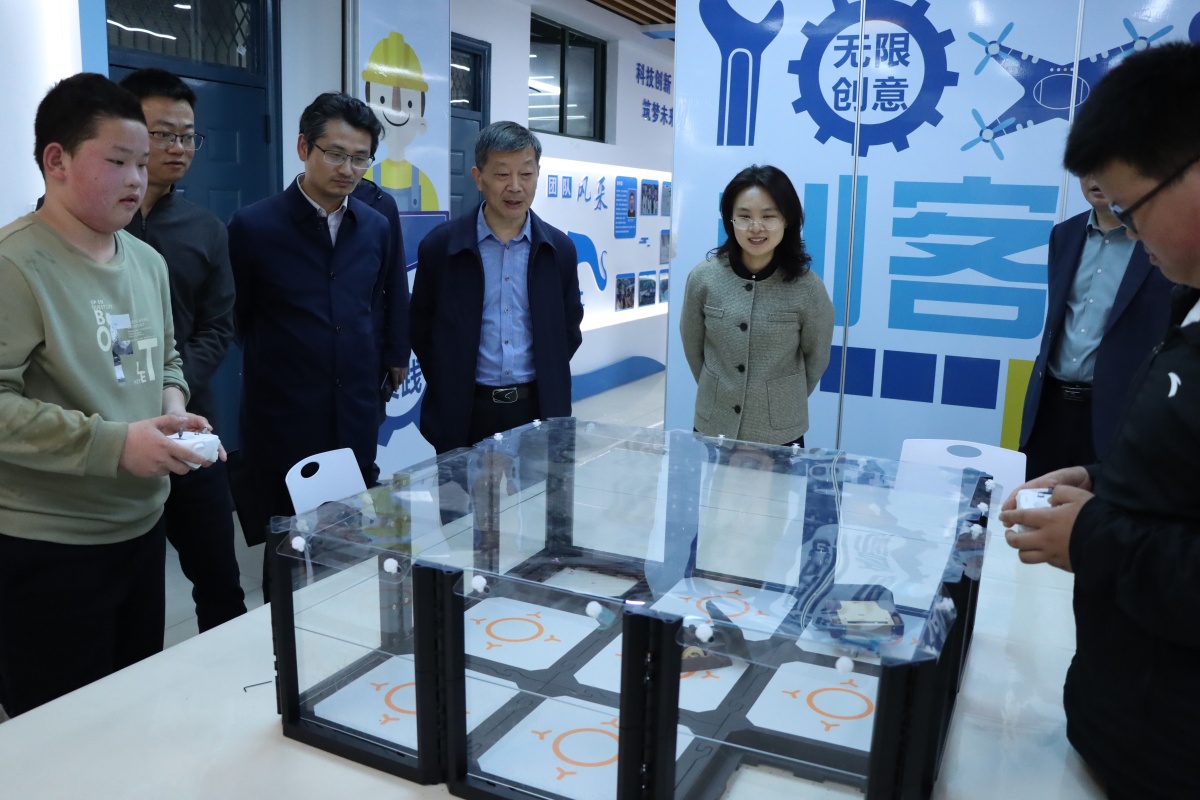在我校领导的陪同下,吴大兵、刘亮荣一行参观了我校的校园环境,饶有兴趣地走进我校庐剧文化展厅、法治宣传教育中心、创客教室,深入了解了我校的办学思想、校园文化、办学特色和办学成果。