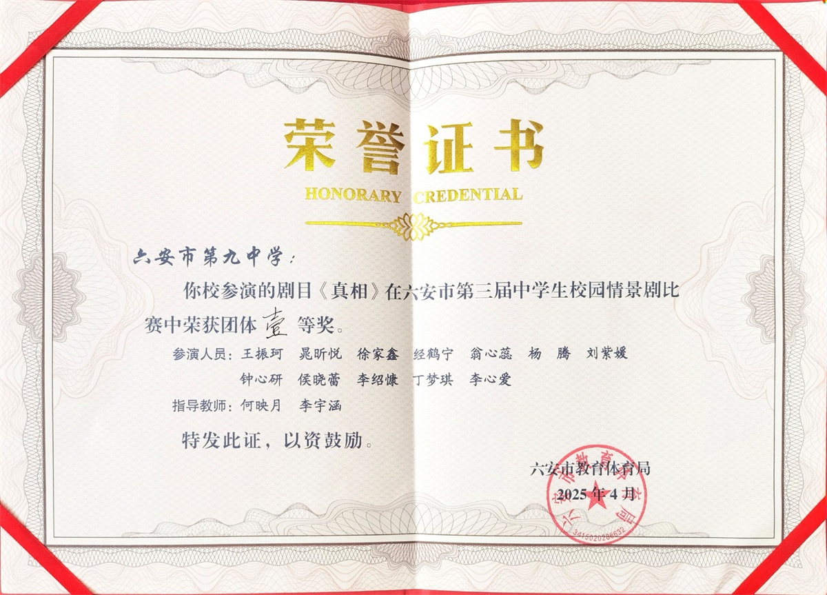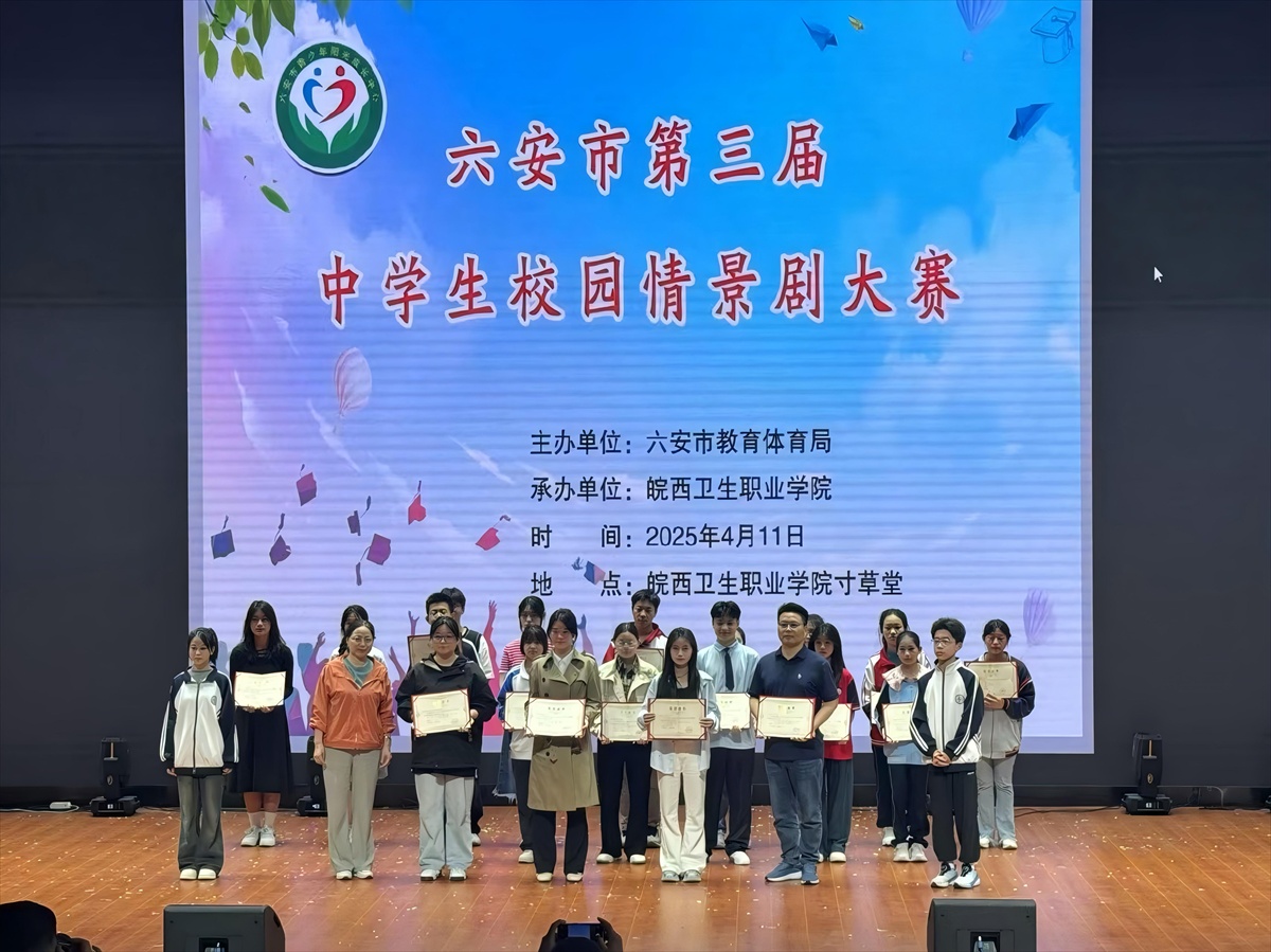 4 月 11日下午,六安市第三届校园情景剧大赛在皖西卫生职业学院寸草堂圆满落幕。我校的原创心理剧《真相》以 91.6 分的优异成绩拔得头筹,从全市20支参赛队伍的参赛作品中脱颖而出,斩获赛事最高荣誉。