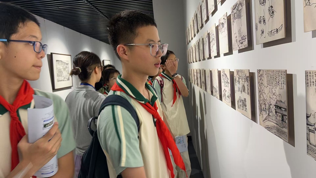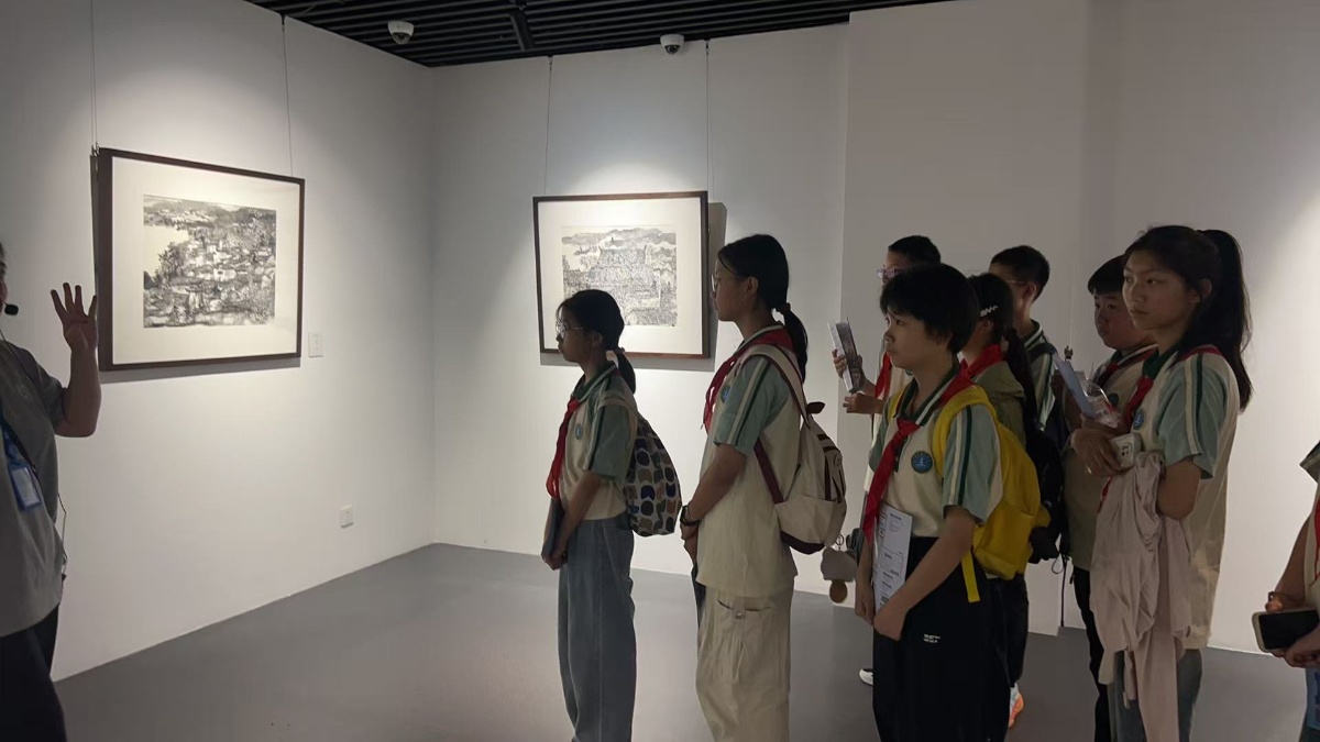 研学之旅不仅限于实验室。在艺术馆,李小可先生的水墨丹青令同学们驻足。徽州晨雾中的白墙黛瓦、藏地雪山的苍劲笔触,与实验室跳动的等离子体形成奇妙呼应。“父亲李可染的笔墨气魄,在儿子的画作中化作烟雨,正如科学探索需要代代传承。”一名同学写道。版画《灵蛇补天》以蛇形勾勒生命轮廓,传统文化与现代科学的交融之美,让少年们感受到“创造力是艺术与科学共通的密码”。