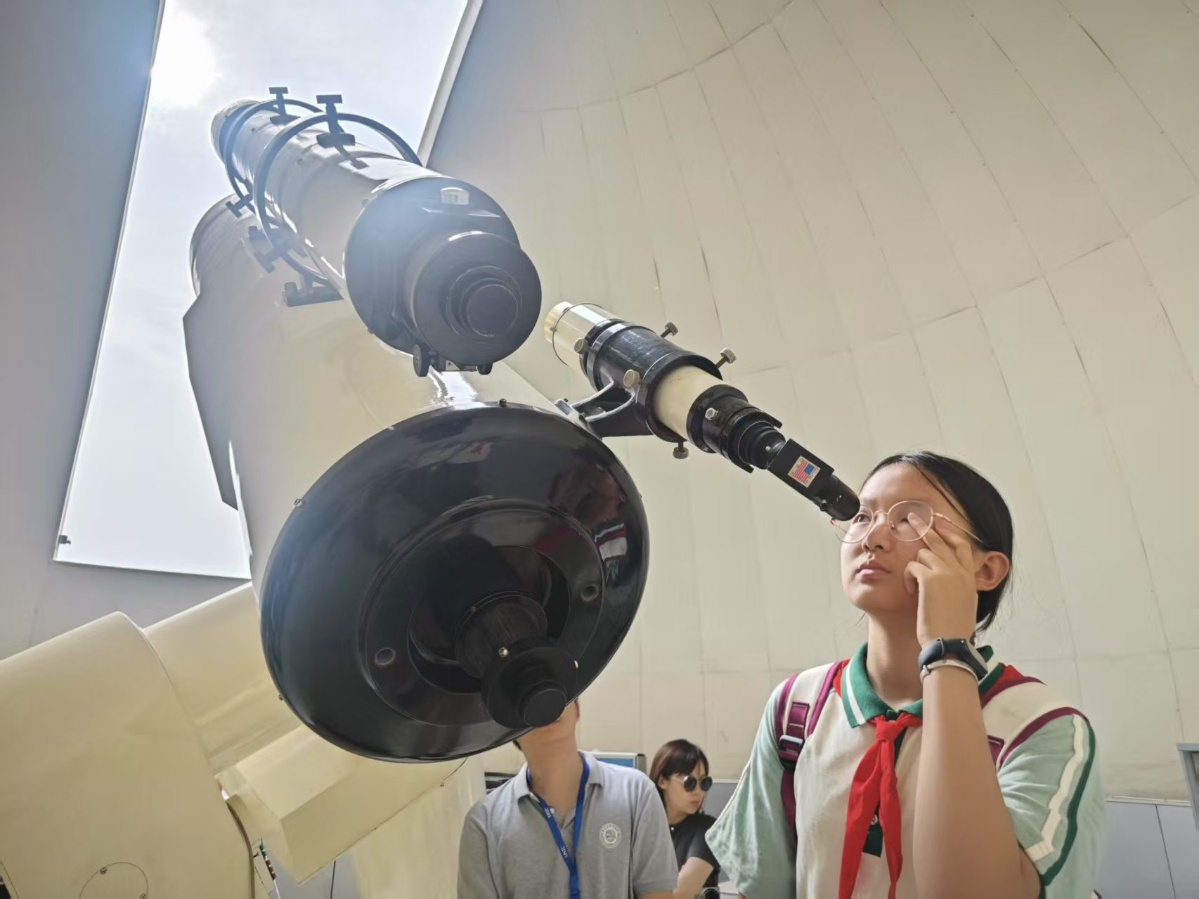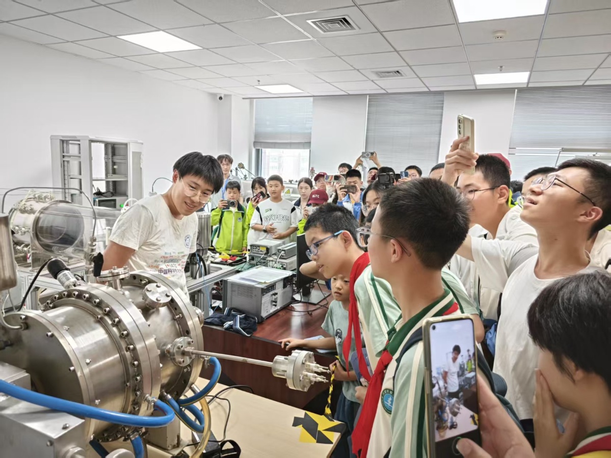 在天文台,同学们透过滤镜观测太阳,原本刺目的光球化作“黑色天鹅绒上的红宝石”,表面耀斑如金丝跃动。专家讲座中,“伽马射线暴是宇宙的闪光灯”“暗物质如隐形细网牵引星河”等比喻,让深奥的天体物理知识变得鲜活。粒子对撞机展厅内,我国在该领域的国际领先地位更让少年们倍感自豪:“渺小如尘埃的人类,竟能解码宇宙的宏大叙事!”