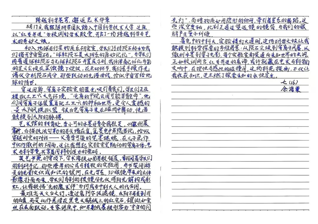 为激发青少年科学兴趣,厚植创新报国情怀,5月17日,共青团六安市委组织我校优秀学生代表,赴中国科学技术大学开展“科技引领未来 少年共筑梦想”主题研学活动。在这场科学与艺术的碰撞之旅中,学生们走进这座以“红专并进”为校训的学术殿堂,亲身感受前沿科技的魅力,探寻理性与感性的交融之美。