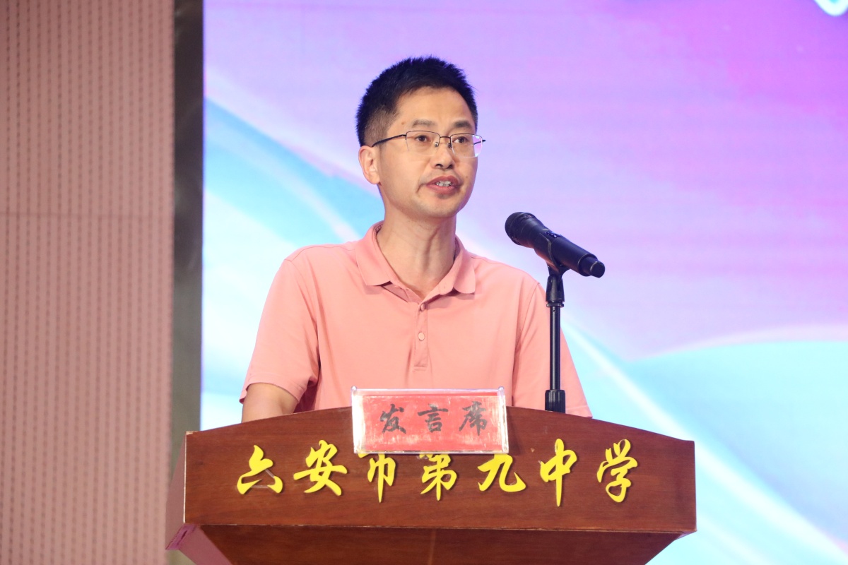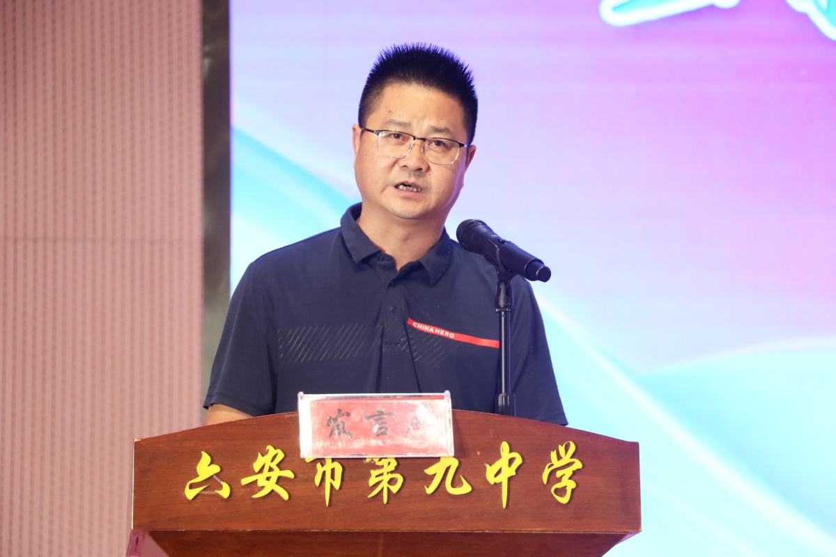 七(20)班涂远同学家长、皖西学院文化与传媒学院教授涂加胜代表学生家长发言。发言中,涂加胜为孩子进入九中后的变化和进步感到高兴,对我校教师的教学技能和教学水平大加赞赏,坚信自己和孩子选择九中非常正确。涂加胜表示,今后在陪伴孩子成长时,多关心、多倾听、多鼓励,做好孩子成长路上的“引路人”“知心人”,积极配合学校和老师,做好家校一体的“联络人”“同行人”。