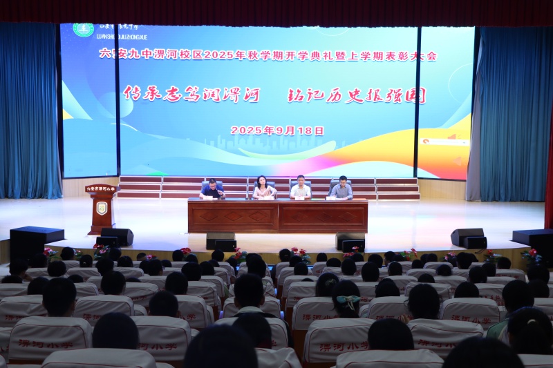 九月的风裹挟着湿润的凉意,绵绵的秋雨轻抚淠河大地。9月18日下午,六安九中淠河校区全体师生齐聚学校大礼堂,隆重举行以“传承志笃润淠河 铭记历史报强国”主题的2025年秋学期开学典礼。