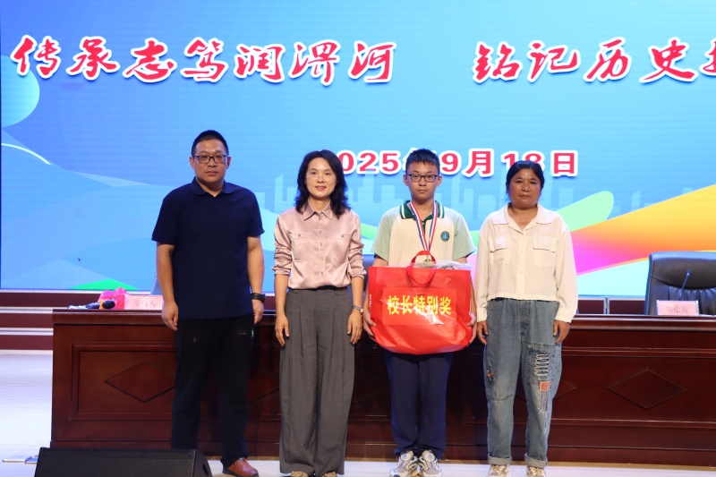 在欢快的乐曲声中,各年级荣获“志笃标兵”奖和“志笃超越”奖的同学依次上台领奖。八(35)班张为乐同学凭借优异的综合素质和突出的表现,荣获本年度“校长特别奖”。优秀学生家长代表受邀上台,与获奖学生合影留念。这一刻,不仅是对优秀学子的肯定,更是家校共育成果的生动体现。