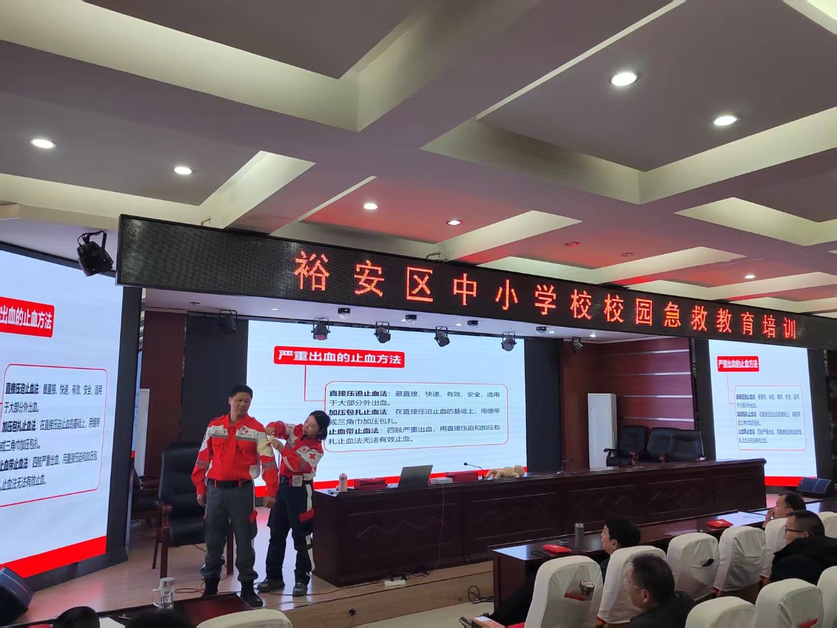 为深入贯彻落实校园安全教育要求,全面提升我校教师应对突发事件和意外伤害的应急救护能力,切实保障广大师生生命安全,1月11日,我校组织全体班主任及体育教师参加了由市卫健委、市红十字会主办,市、区教体局协办的校园急救教育专题培训。此次培训旨在打造一支具备基本急救技能、能在关键时刻发挥作用的校园应急队伍。