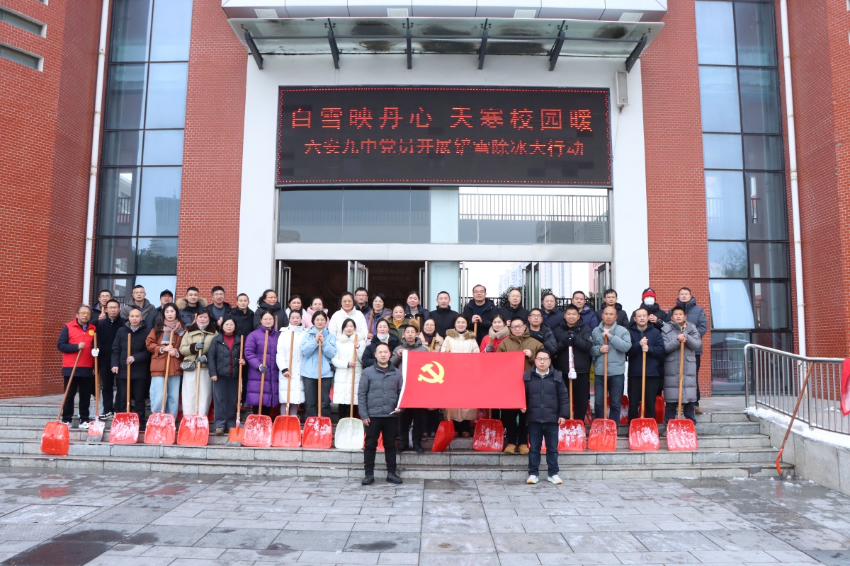 六安九中此次铲雪除冰行动,展现了党员教师“关键时刻站得出来、危急关头豁得出去”的先锋模范作用,彰显了九中人不怕困难、勇于担当、吃苦耐劳、甘于奉献的精神风貌,体现了六安九中党组织强大的凝聚力和引领力。六安九中党委将一如既往地加强组织建设、强化党员教育管理,进一步增强了党组织的向心力和战斗力,用实际行动为学校的精品化发展掌舵领航。(文:查军柱 图:李应)