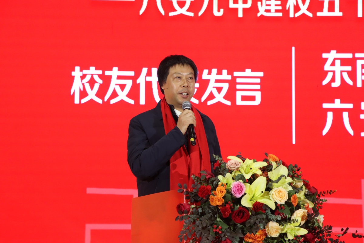 六安九中1994级校友、东南大学经济管理学院教授陈健,代表全体校友祝福母校五十周年生日快乐,祝愿母校在下一个五十年再创辉煌。陈健深情回忆了自己在母校宝贵的求学时光,分享了自己求知、成长的经历,激励学弟学妹们好好学习,早日成为社会主义现代化建设的有用人才。