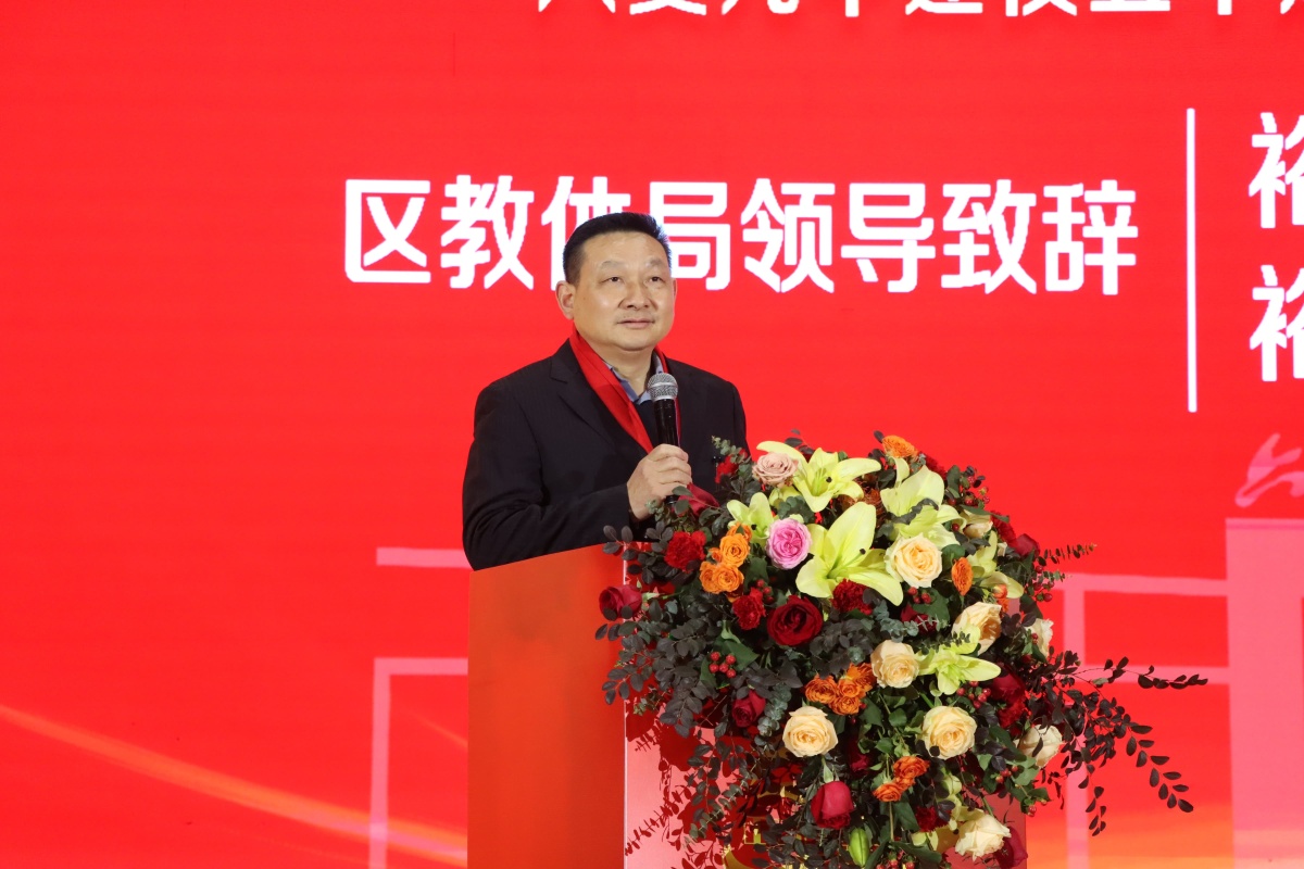 王永益代表区教体局致辞。致辞中,王永益充分肯定了六安九中五十年的办学成就和为裕安教育发展做出的积极贡献;并希望,六安九中在新时代的征程上,永葆“闯”的精神,从五十年奋斗历程中汲取力量,奋力开创事业新局;鼓足“创”的劲头,持续推动学校高质量发展,谱写立德树人新篇;弘扬“干”的作风,展现新时代的教育担当,再创九中新辉煌。